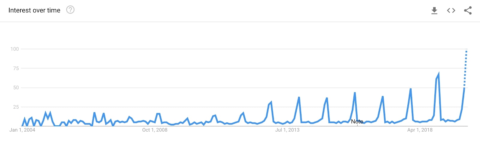 Google searches for brown paper packaging since 2004.